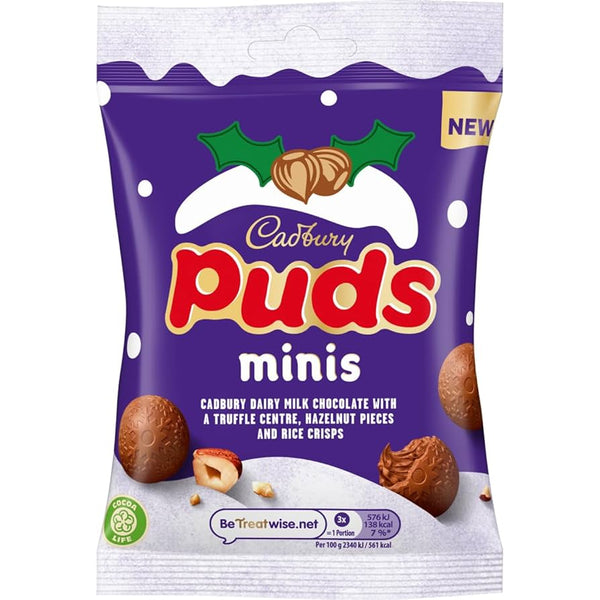 Cadbury's Christmas Puddings made from Cadbury's Dairy Milk with a truffle centre, hazelnut pieces and rice crisps.