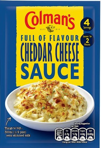 No matter how you use it, Colman's Pour Over Cheddar Cheese Sauce Mix (40g/1.4oz) is sure to add a rich and delicious flavour to any dish.