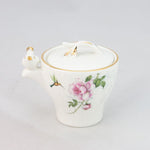 Elegant Floral Imagery: Soft pink roses bloom across the white porcelain, evoking the English countryside's timeless allure.
