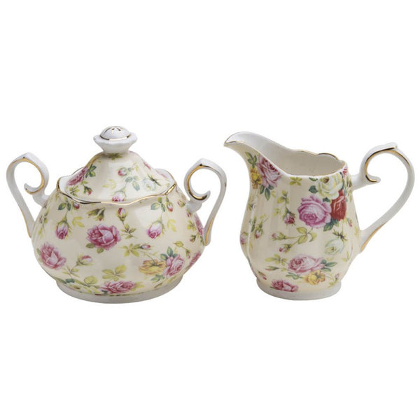 The Cream Cottage Rose Chintz Sugar and Creamer Set brings the quintessential charm of a blooming English garden right into your home. Adorned with the delicate patterns of rose chintz, this set is a poetic nod to traditional British teatime, marrying the grace of yesteryear with the cheer of your contemporary tea moments.