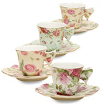 Step into a delightful English garden with the Rose Chintz Espresso Collection, where each cup is a floral serenade to the senses. This quartet of fine porcelain cups and saucers blooms with a variety of rose chintz patterns, whisking you away to a fragrant rose hedge with every delicate sip. The soft pastel backgrounds serve as the perfect canvas for the vibrant pinks and lush greens of the roses, turning your coffee break into a moment of tranquil beauty.