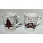 Charming Holiday Design: Each mug features iconic Christmas motifs – a stylized Christmas tree and a vintage red truck – evoking memories of traditional holiday celebrations.