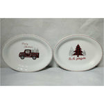 Step into a whimsical winter wonderland with our Vintage Yuletide Serving Plates. These two plates, adorned with iconic symbols of the season, encapsulate the nostalgia and magic of Christmas past. Let the holiday merriment take the wheel with the 'Merry Christmas' plate featuring a classic red pickup truck or express the joy of the season with the 'Tis the Season' plate showcasing a charming plaid Christmas tree.