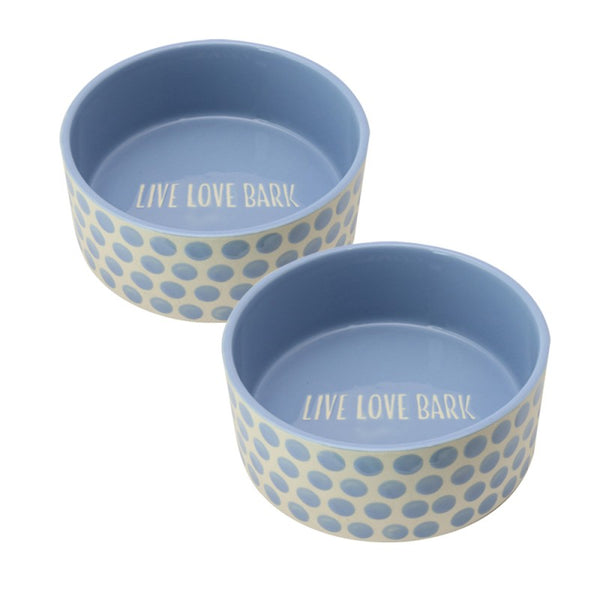 These dog bowls are quality pet accessories. The blue dots pattern enhances their appeal while their functionality stands out. They're easy to clean, sturdy, and provide a comfortable eating experience for our dog. A reliable choice for our pet's mealtime needs.