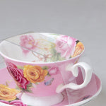 Vivid Floral Design: Each cup and saucer is graced with full-bloom roses and delicate butterflies, creating an inviting garden scene that brings the beauty of the outdoors to your table.