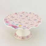 Embrace the charm of spring at your table with the Floral Pink Cake Stand. This piece is a delightful symphony of pastel pinks and scattered floral motifs, offering an air of whimsy and elegance to your dessert presentations. Whether showcasing a decadent cake or a selection of dainty pastries, this stand ensures your baked delights are the centerpiece of any gathering.