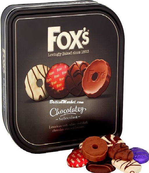 Imported from the United Kingdom specifically for the Holiday season, the Fox's Fabulous Chocolatey Biscuit Selection Tin contains only the finest dark, milk, and white chocolate there is to offer in this delicious chocolate biscuit assortment. An amazing variety of flavors all in one tin, this is the most indulgent and intense selection of Fox's biscuits yet - without any artificial flavours and colours!