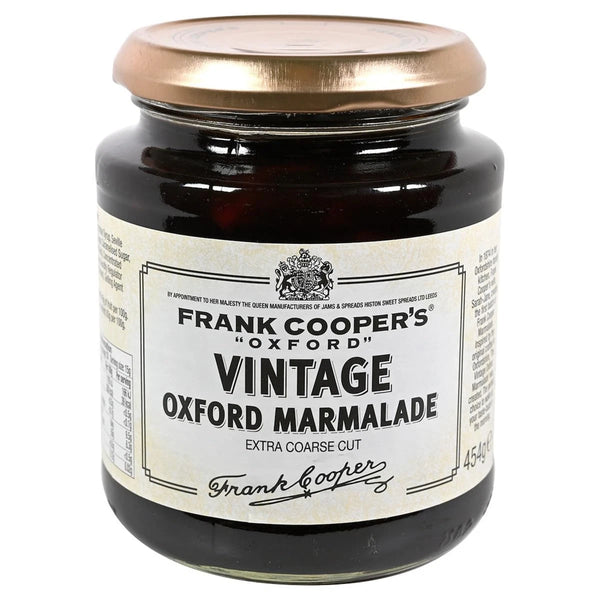 The Oxford Marmalade is inspired by the original Sarah Jane Coopers 1874 recipe, made using a dark seriously intense coarse cut Seville orange marmalade. Sure to appeal to the mature palate of the true marmalade connoisseur.