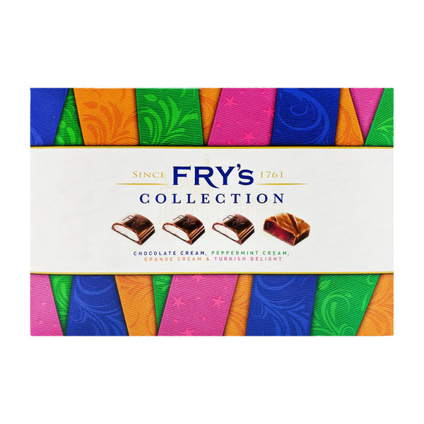Fry's Collection Box is a wonderful Christmas edition selection of Fry's delicious British Chocolate Bars! Including 4 treat sized bars of Fry's most iconic and delicious chocolates, including Turkish Delight, Peppermint Cream, Chocolate Cream and Orange Cream. A perfect Christmas gift for lovers of classic British chocolate bars! Imported from the UK. 249g box