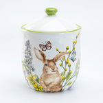 Behold the charm of the countryside with the Garden Bunny Medium Canister, where practical storage meets pastoral elegance. A delightful rabbit, adorned with fluttering butterflies and blooming florals, takes center stage on this piece, turning your kitchen storage into a scene from a whimsical woodland.