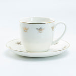 Made of fine porcelain the impeccable white texture of the cups make them look elegant and sophisticated. The rims of the pure white cup and saucer are gold-trimmed with great finishing. The saucer and cup feature golden prints of bees around the borders. White Golden Bee 2 Set Tea/Coffee Cups and Saucers is a great item to purchase and add to your daily tea or coffee times.