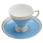 Mesmerizing Blue Hue: The cup and saucer are bathed in a captivating celestial blue, reminiscent of the tranquil morning sky, offering a peaceful start to any day.