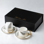 Introducing the Luxe Gold Leaves Espresso Cup and Saucer Set – a fusion of minimalist design and opulent detailing, perfect for those who enjoy their coffee with a side of sophistication.