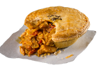 Our chicken curry pie is a true representation of a traditional Chicken Balti curry. Originating at Midlands football grounds in the late-1990s, the Balti pie is now part of British football (aka soccer) culture sure to be found at ever footie match in the UK. We’ve brought these great flavors and traditions together in a tasty tomato based curry sauce bursting with flavor and aromatics.