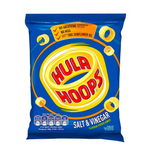 Hula Hoops Salt and Vinegar crisps are hollow cylindrical shaped potato snacks made by KP. The golden brown Hula Hoops are made with potato rice flour and salt and crisped to perfection in 100% sunflower oil. Hula Hoops were first introduced to the world in 1973 and their wonderful balance of crunchiness and savory taste has been loved by generations of Brits ever since. Why not try Hula Hoops Salt and Vinegar flavor, They come in a blue packet and have a hint of vinegar flavor accompanied by a mild salty potato crunch .If you like snacks you'll fall in love with Hula Hoops.