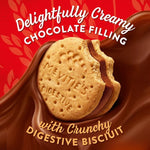 Chocolate flavour cream filling sandwiched between two delicious digestives biscuits