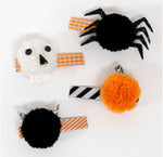 Who says Halloween has to be super scary? We don't, that's why we've created these adorable hair clips. They feature pompoms with fabulous embellishments which turn them into a skull, spider, pumpkin and cat.