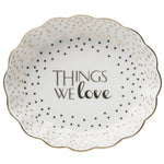 Heartfelt Message: Embossed with the words "THINGS WE LOVE," this dish is a daily reminder of the cherished items and memories it holds.