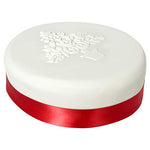 Luxury fruit cake infused with brandy, filled with sultanas, apricots & cherries & covered with marzipan and soft white icing.