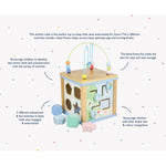 This activity cube is the perfect toy to keep little ones entertained for hours! The 5 different activities include a bead frame, shape sorter, maze, spinning cogs and turning blocks.
