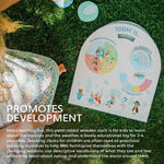 Encourage children to learn about the seasons and the weather with this beautiful wooden Peter Rabbit weather clock. Turn the wheel to select the day of the week, choose the weather from 6 magnetic pieces, and turn the arrows to the season and temperature. Decorated with beautiful Peter Rabbitô characters and illustrations, this will look beautiful on a bedroom shelf.