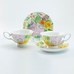 The Hydrangea & Orange Teacup Saucer set is a bewitching ensemble that brings the whimsy of an English garden right to your tabletop. With its riot of color and the delicate form of hydrangeas, this set promises to turn every tea time into a storybook moment.