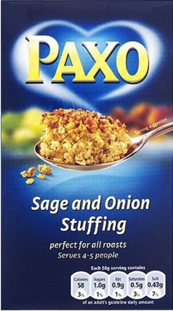 Stuffing with a tasty twist. Traditional Paxo Sage & Onion Stuffing mix is the perfect accompaniment to any meat. Perfect for roasts.Serves 4-5 people.