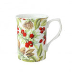 Charming Design: Featuring an intricate pattern of red berries and pine cones, set against a backdrop of lush green foliage. The vibrant colors and detailed artwork capture the essence of a walk through British woodlands.