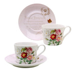 The Butterfly Blossom Tea Cup and Saucer Set is where craftsmanship meets the art of the natural world. The cups are adorned with beautifully illustrated roses and peonies, alongside butterflies that seem to have alighted just for a moment's rest. The saucers serve not just as a resting place for the cups but also as a continuation of the garden narrative, inviting you into a story with each glance.