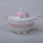 Charming Polka Dot Design: Adorned with dainty pink pin dots, this sugar bowl exudes a playful yet refined aesthetic.