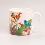 Vivid Botanical Artwork: Featuring an exquisite illustration of a bluebird perched among tropical flowers and butterflies, the mug is a canvas of nature's best.