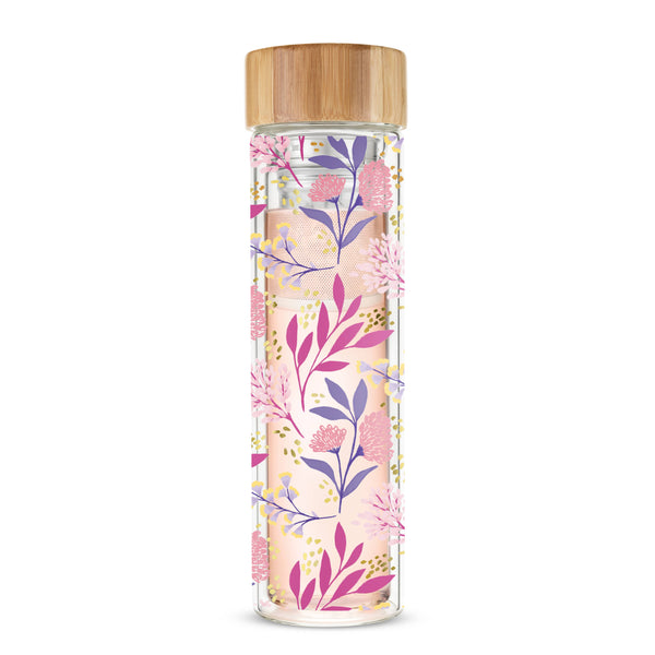 This travel infuser mug lets you bring your high brow tea experience to your morning commute, your evening dog walk, your hair appointment, and wherever else your day takes you. • Holds 16 oz • Double-walled borosilicate glass • Bamboo Lid with silicone gasket • Stainless steel detachable infuser • Double wall design keeps hot drinks hot and cold drinks cold.