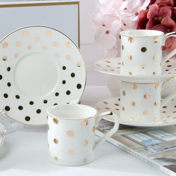 This set invites you to pause and enjoy the moment, whether you're starting your day with a strong espresso or ending a meal with friends over a small cup of Turkish coffee. The playful yet sophisticated polka dot pattern ensures these cups and saucers stand out in any setting.
