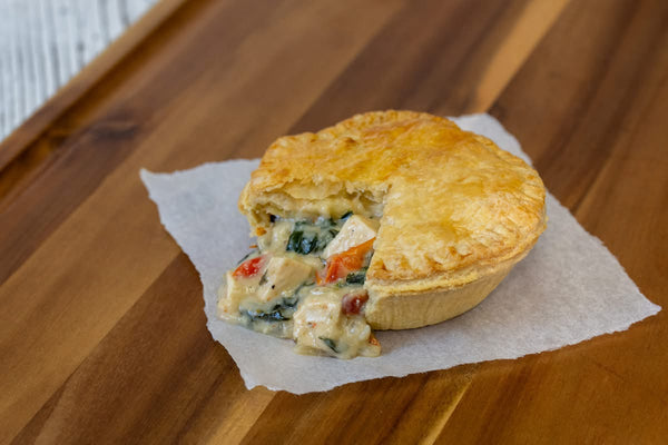 Say hello to your new favorite flavor! Our Chicken Pie combines tender chicken, smoky bacon, fresh spinach, and a hint of sweet & spicy—all wrapped in our signature golden, flaky crust.