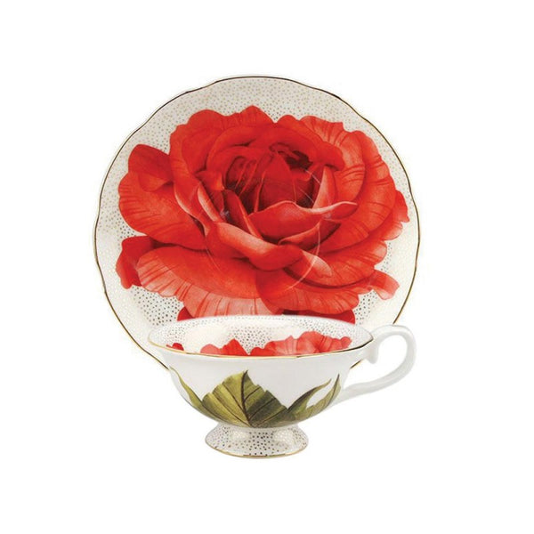 Indulge in the Romance of Teatime with the Red Rose Dotty Gold Teacup Set