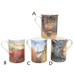 Brew a touch of culture into your daily routine with our Masterpiece Collection Fine Art Mugs. Each mug in this exquisite set (labeled A, B, C, and D) showcases a replication of a renowned work of art, transforming your tea time into an immersive artistic experience. Perfect for the art aficionado and tea lover alike, these mugs are like having a personal gallery with every sip.