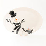 Product Description: Add a touch of frosty fun to your winter table with these charming Black Snowman Oval Platters. Each platter in this set of two features a jolly snowman complete with a stylish black top hat, a cozy checkered scarf, and a warm smile that's sure to melt hearts. These platters are the perfect size for serving a variety of festive foods, from holiday roasts to an array of sweet treats. Crafted from high-quality porcelain, they’re not just platters but a celebration of the season's joy.
