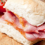 Our back bacon is hand-trimmed, hand-rubbed, and cured to our authentic British recipe. Our speciality bacon is called back-bacon because it is made with pork loin, and is much leaner than American bacon which is made from pork belly.
