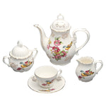 Complete Tea Service: This set includes a teapot, sugar bowl, creamer, and a teacup with saucer, providing everything needed for the perfect tea service.
