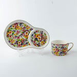 The Summer Chintz Tea & Snack Set encapsulates the essence of leisurely summer days and the British penchant for tea-time elegance. The plate's ample surface is a canvas of colorful flora, inviting you to pair your favorite tea with a selection of snacks or sweets, while the matching cup sits snugly alongside, completing the picturesque setting.