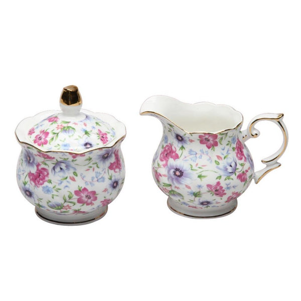 The Summer Garden Sugar and Creamer Set is the embodiment of a blooming English garden on a warm summer day, crafted to add a flourish of floral exuberance to your tea time.
