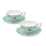 Refreshing Mint Accents: The soft mint background of the saucers and the cup's interior adds a breath of fresh air to your tea collection.