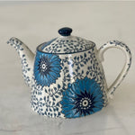 Striking Sunflower Motif: The teapot is adorned with a captivating blue sunflower and foliage design, reminiscent of a country garden under a clear sky.