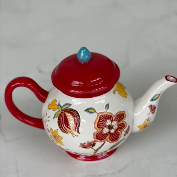 Pouring a Vivid Tale with Every Cup The Texture Red Floral Teapot is a vibrant addition to any tea lover's collection. Its richly colored lid and spirited floral design offer a contemporary take on traditional teaware, making every tea time a moment of pure, colorful joy.