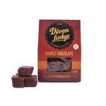 Packed full of Belgian chocolate for a delectable rich taste, The Devon Fudge Company's Double Chocolate Fudge is full of flavor, and tastes 'just like a chocolate brownie'. The perfect present for a chocolate lover, this fudge is creamy, scrumptious, and will leave you wanting more! This rich and creamy treat combines velvety clotted cream with the finest cocoa, resulting in a smooth, melt-in-your-mouth experience. A true delight for chocolate lovers. Free from gluten, palm oil, preservatives & artificial coloring. The fudge comes packaged in a bright, branded box, this makes it the perfect gift idea for any occasion. May contain traces of nuts. All of our fudge is handmade