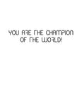 • A2 folded card, 5.5" x 4.25" folded • Ecru euroflap envelope • Locally printed on recycled paper from an FSC-certified mill with soy-based inks Message: You are the champion of the world!