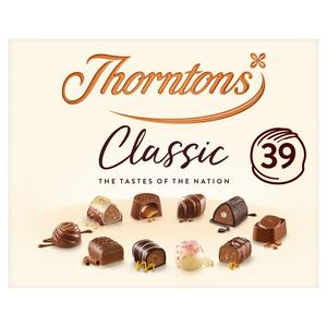 Thorntons Classic Collection, an assortment of luxury chocolates, proudly crafted in the UK and celebrating the nation's most-loved tastes. Flavours include; Creamy Fudge, Gooey Caramel, Crunchy Praline, Fudge Brownie, Heavenly Honeycomb, Strawberries and Cream, Triple Chocolate and Tempting Toffee. Perfect for giving as a gift or sharing.