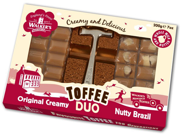 This gift pack from Walker's Nonsuch contains two of their best toffee bars, original creamy and nutty brazil, with a novelty Walker's Nonsuch hammer for breaking the bars into bite size pieces.