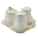 Versatile Ensemble: Comprising salt and pepper shakers, a sugar bowl, and a creamer on a matching tray.