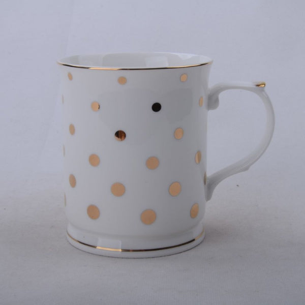 A glossy gold polka dot pattern to add a sense of panache to your morning wake-me-up.